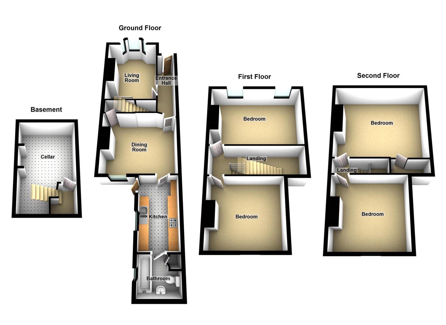 From the first floor landing a staircase rises up to the second floor landing with doors off to second floor bedrooms.