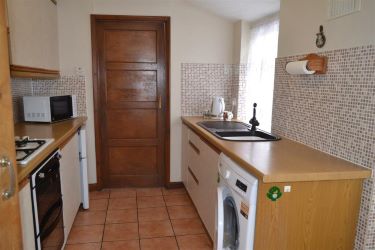 From the dining room a door opens into the kitchen. The kitchen has a working surface with an inset sink unit, cupboards and drawers under and space and plumbing for a washing machine. There is a further working surface with an inset gas hob, a gas double oven under, a concealed extractor hood with fan over and there are cupboards and also space for a fridge. The kitchen has matching eye-level cupboards, tiled splashbacks, tiled flooring, window to side and a door giving access to a courtyard garden.