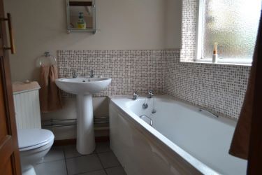 From the kitchen a door opens into the bathroom having a suite in white to include a side panelled bath, pedestal wash hand basin and a low flush W.C. There is tiling to splashbacks, frosted window to side and doors into an airing cupboard housing a factory insulated hot water cylinder with immersion hater.