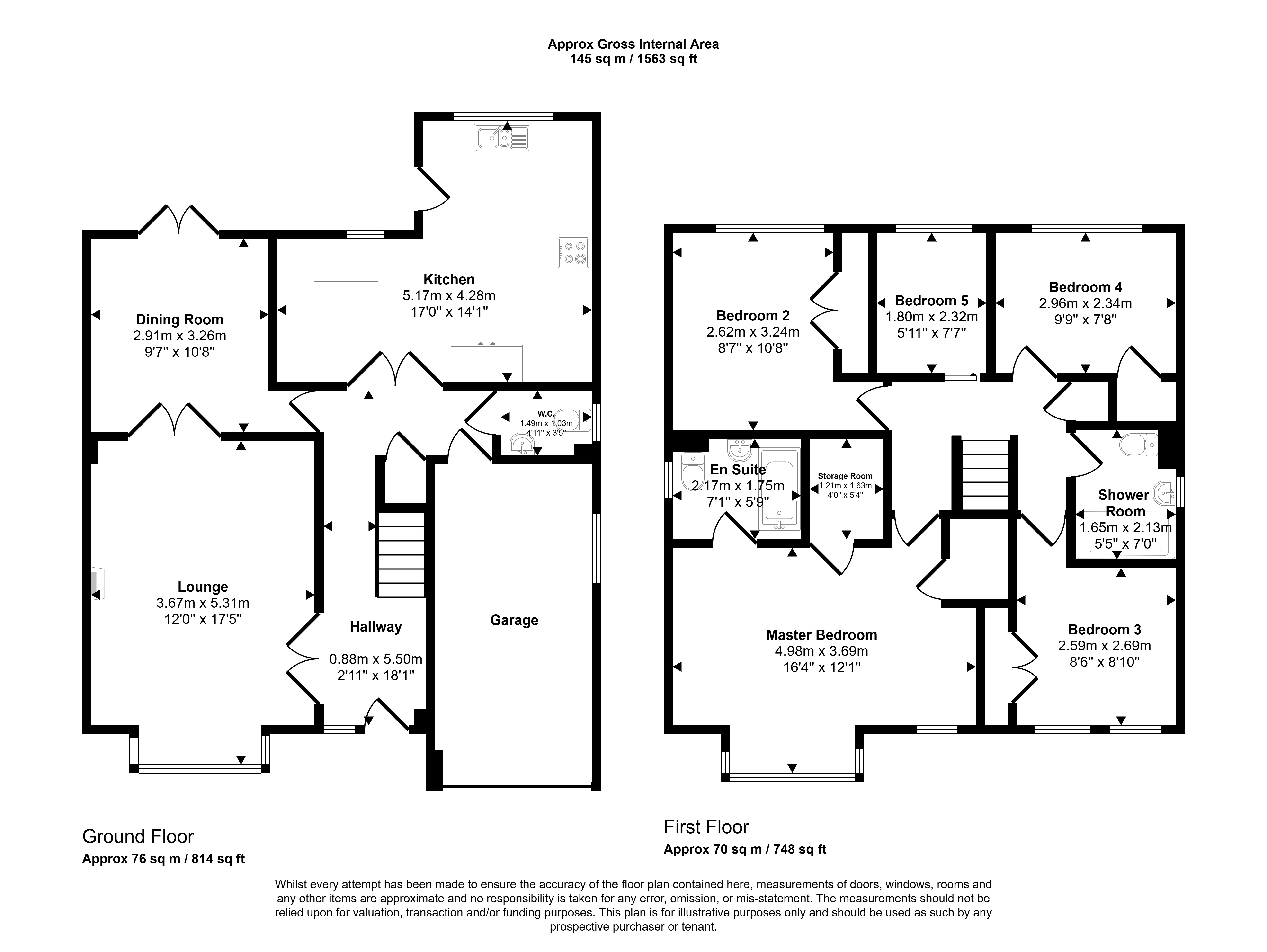 The ground floor of the property has an L shaped hallway, lounge, kitchen, dining room, wc and garage. The first floor of the property consists of a master bedroom with an en suite as well as an additional 5 bedrooms, a main shower room and storage cupboard