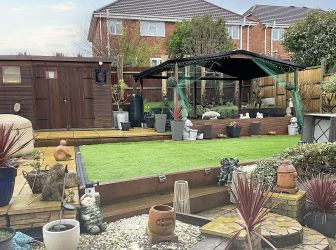 To the front of the property there is a well sized road parking for multiple cars, and a wait to lawn area with mature shrubs, flower beds and hedges. To the rear there is a large enclosed garden with a gazebo seating area and a patio seating area, a good sized lawn area with flower beds and shrubs.
