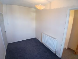 The second bedroom offers a rear-facing window and a recessed cupboard housing the gas combination boiler, which provides domestic hot water and central heating for the property. There is a radiator (TRV) and a ceiling light point.