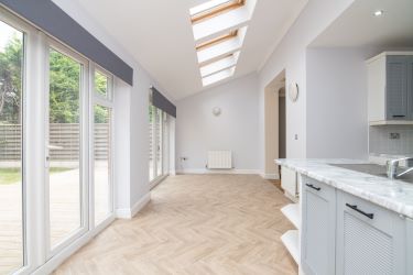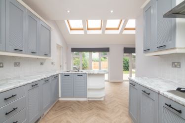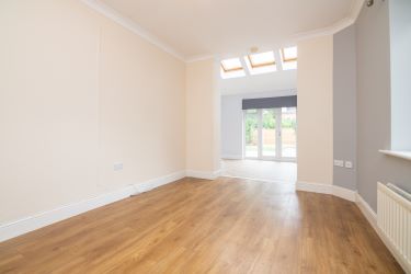The ground floor features two generous reception rooms and a stunning, contemporary kitchen/dining area. This bright and welcoming space is enhanced by two sets of French doors and Velux roof windows, allowing natural light to flood in and providing seamless access to the rear garden. A separate utility room and a convenient under-stairs cloakroom complete the ground floor.