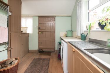 The front of the house has a small garden and private drive with plenty of space for multiple cars. To the rear, a large enclosed private garden featuring a range of outbuildings with a variety of potential uses, two garages, maintained lawn along with fruit trees and a dedicated vegetable growing area.