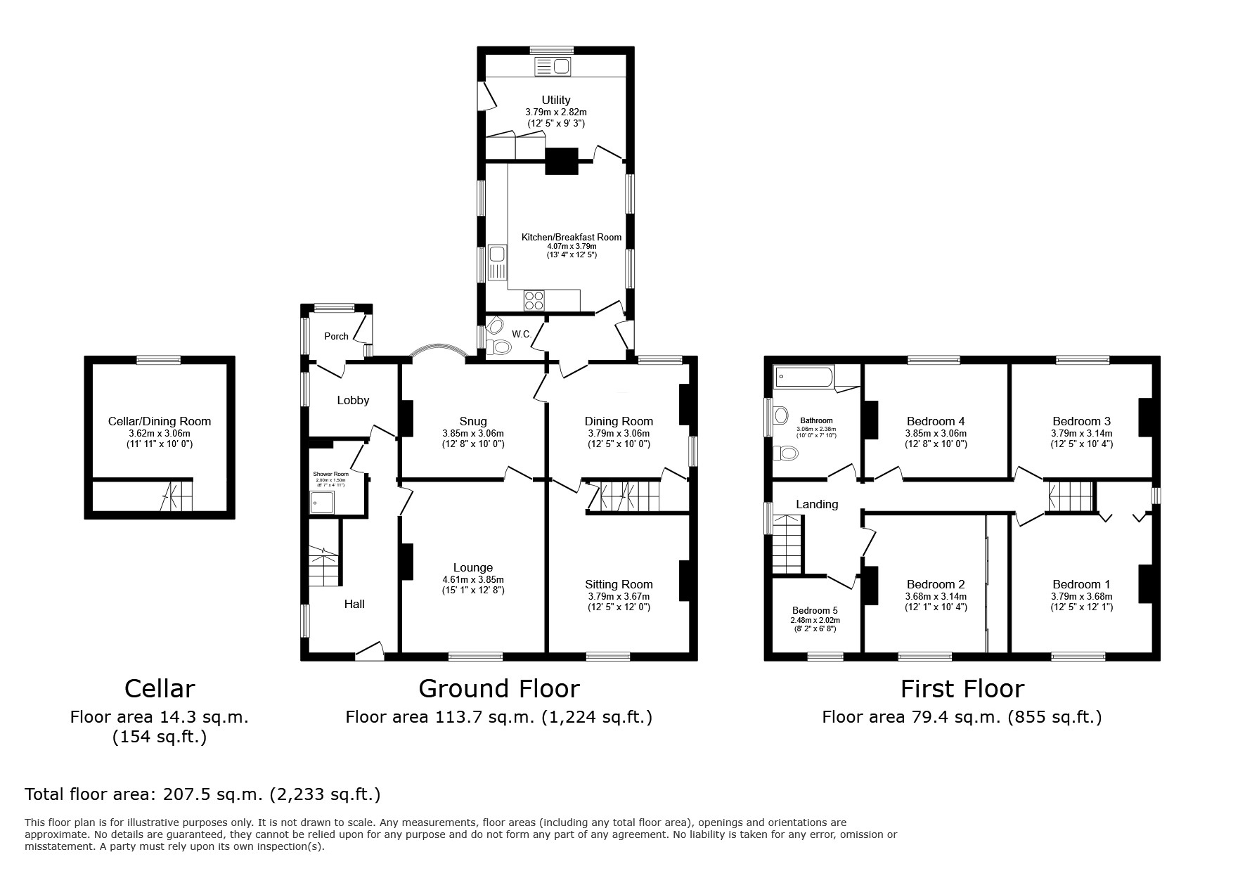 The welcoming entrance hall leads to a choice of reception rooms, including a spacious lounge with feature fireplace and a sitting room ideal for family gatherings. There’s also a snug, perfect as a study or reading room. The dining room connects to the rear of the home where you’ll find a spacious kitchen with plenty storage and ample space for dining. A utility room and guest WC complete this level.